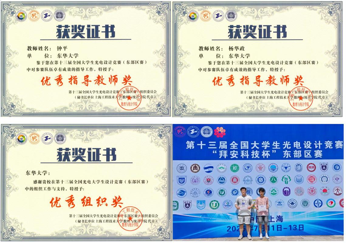 优异的成绩背后,离不开指导老师的辛勤付出与学校的全力支持。光电系钟平教授和物理实验中心杨华政老师被授予“优秀指导教师”称号。同时,东华大学也因出色的组织工作荣获“优秀组织奖”。特向所有获奖师生表示热烈祝贺!